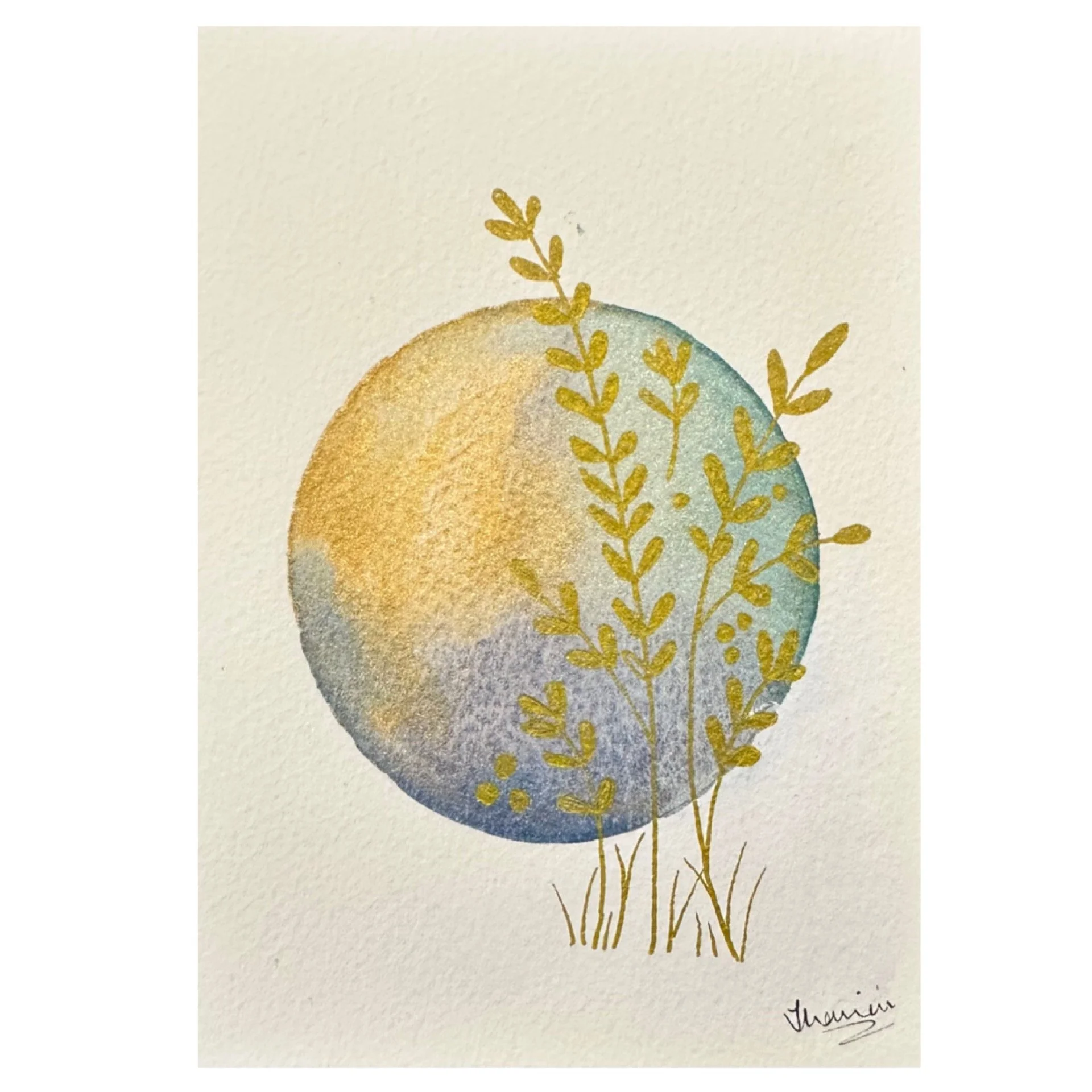 Cards are hand painted on watercolor paper and are mounted on 10 x 15 cm quality card stock. A matching envelope is included.